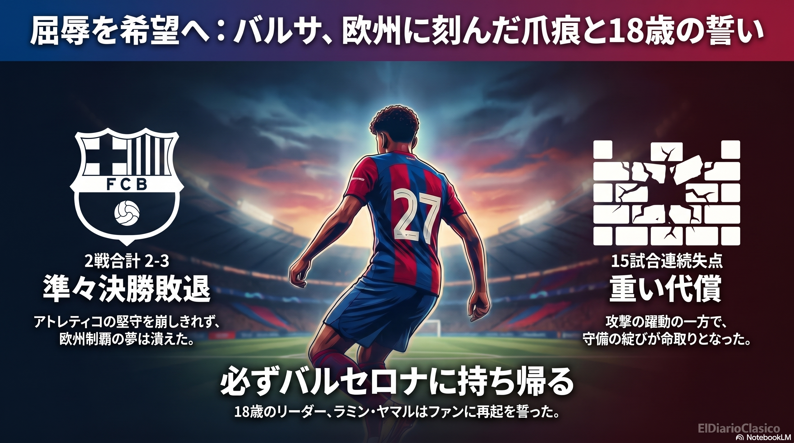チャンピオンズリーグでの敗退は、不可解な判定への怒り、理解に苦しむ采配、そして構造的な守備の欠陥という多くの課題を浮き彫りにしました。しかし、18歳のラミン・ヤマルの力強い誓いや選手たちの底知れぬ闘志は、この若いチームが確実に未来のタイトルへ向かって進んでいることを証明しています。今は残された国内リーグの制覇へ向けて立ち上がる時です。