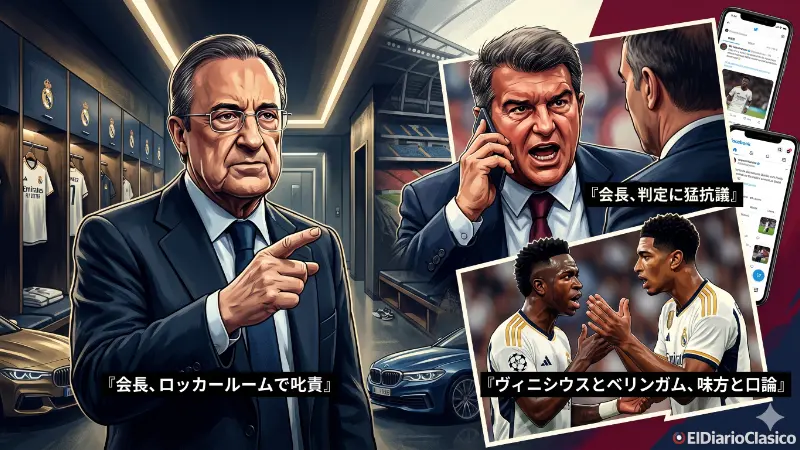 CL敗退後のレアル・マドリードとバルセロナで、クラブ首脳陣が公然と不満を表明する事態は、両クラブの内部に相当な動揺があることを示しています。ペレス会長の選手への直接的な叱責や、ラポルタ会長のUEFAへの激しい抗議は、単なる試合結果への不満に留まらず、クラブの現状に対する危機感の表れと捉えられます。バイエルンやアトレティコによるSNSでの挑発合戦も、こうした緊張感の高まりを反映したものでしょう。クラブのトップが感情を露わにするのは異例であり、今後のチーム運営や選手との関係性にどのような影響を与えるか、注視が必要です。