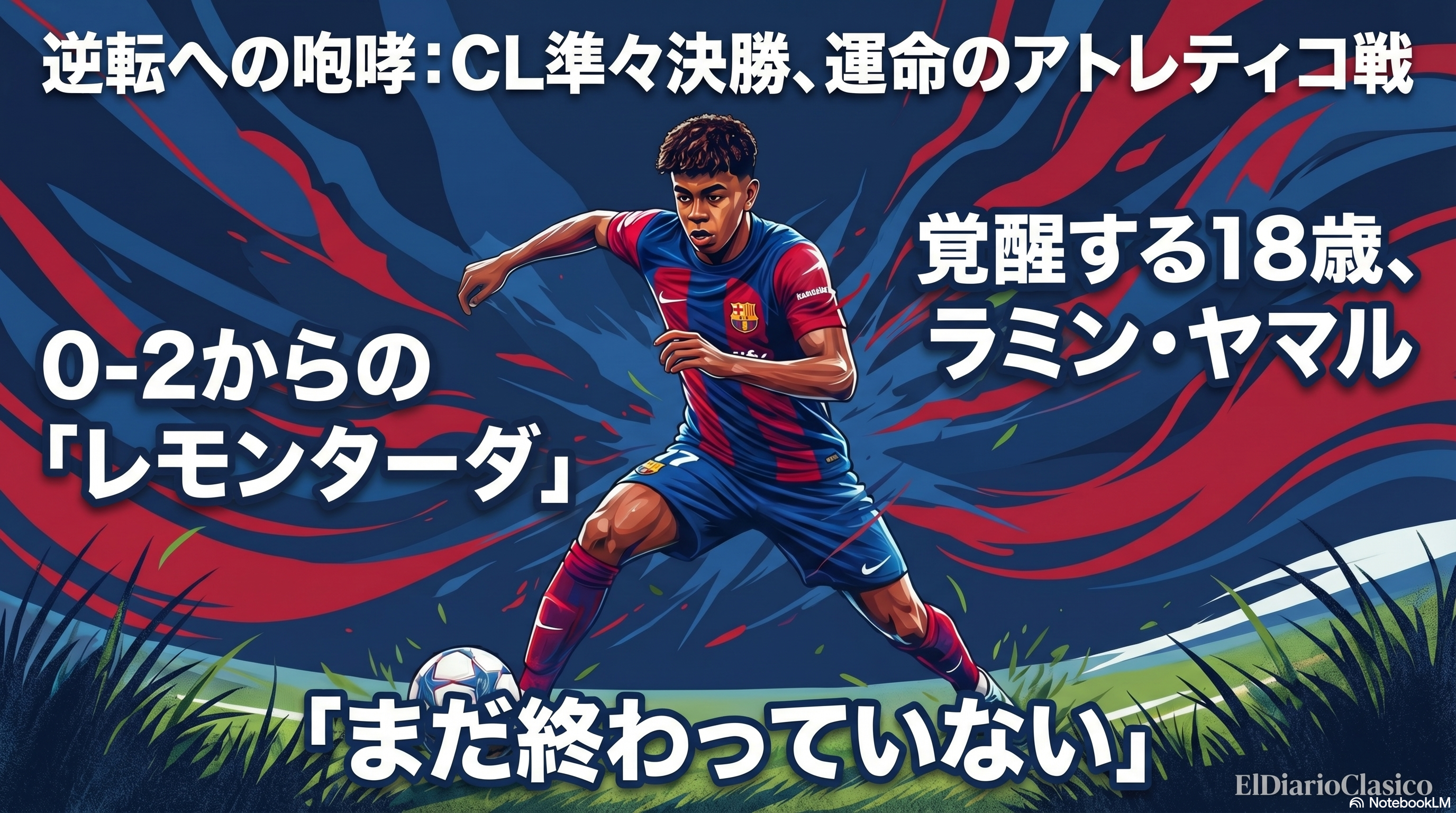 エスパニョールとのダービーに快勝しリーガ優勝に大きく前進した一方で、試合後の騒動やCLアトレティコ戦に向けた守備陣の不安など、熱気と緊張が交錯する一日となった。ラミンの大記録達成やアタッカー陣の奮起を武器に、大逆転でのCL準決勝進出を目指す!