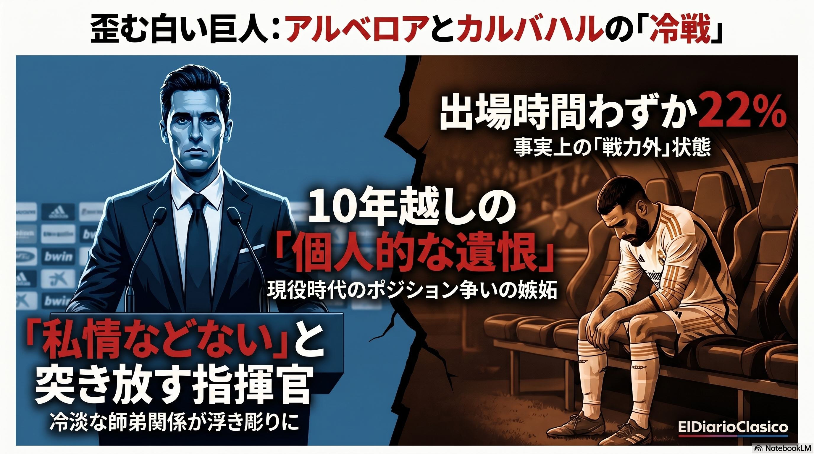 レアル・マドリードのアルベロア監督が、カルバハルとの確執疑惑やムバッペのSNS騒動といった外部からのノイズを力強い言葉とユーモアで一蹴し、チームの引き締めに成功しています。一方でバルセロナのデ・ヨングがメディアの報道姿勢に苦言を呈するなど、ピッチ外での情報戦やSNSの余波が選手や監督に与える影響の大きさが浮き彫りになる一日となりました。