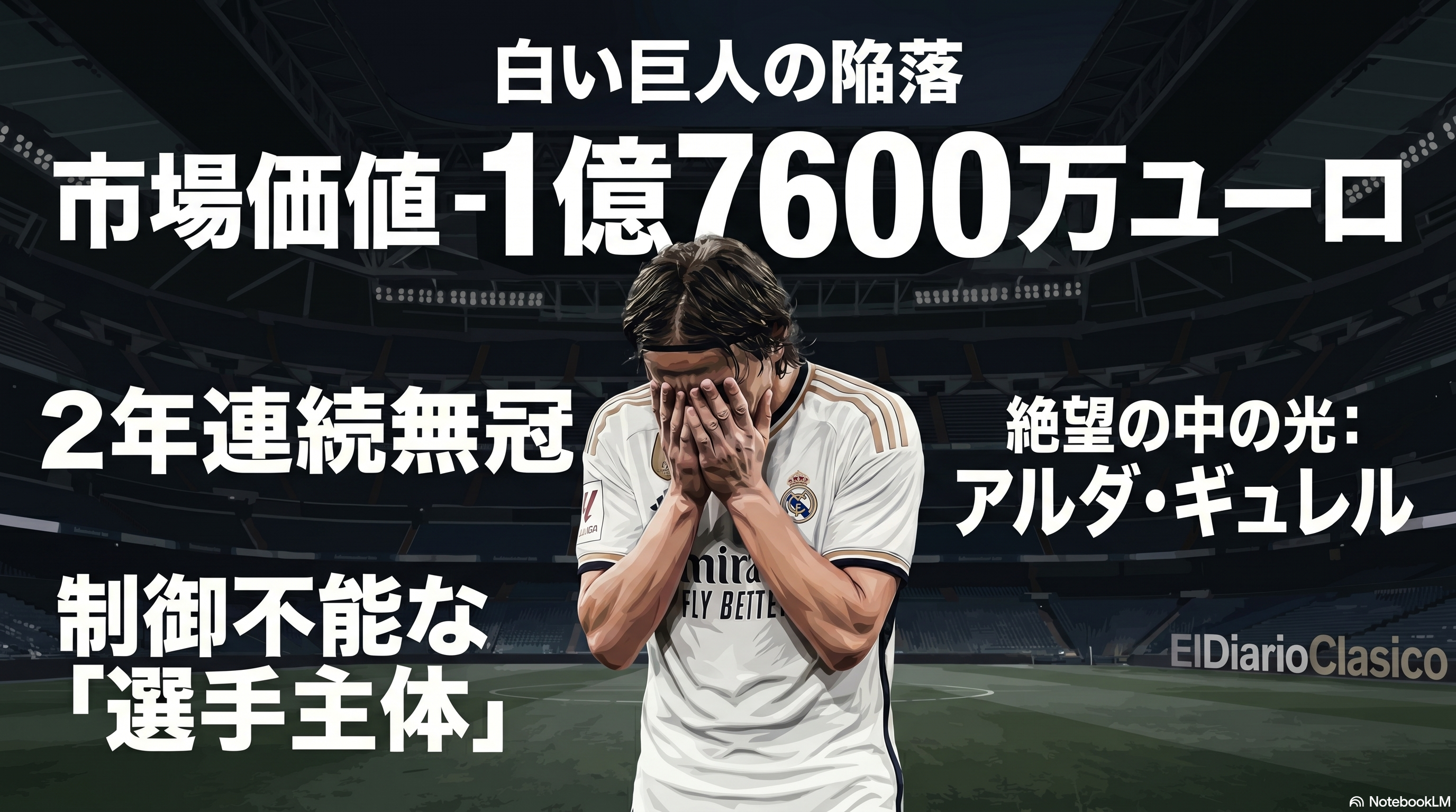 2年連続の無冠危機によりチームの市場価値は大きく下落し、OBからは「選手がボスになっている」と苦言を呈されています。アルダ・ギュレルのような明るい話題やモウリーニョ復帰の噂、来季のスーペルコパの話題などもあるものの、フロレンティーノ・ペレス会長のクラブ運営や監督人事に対する厳しい批判が巻き起こり、混迷を極める現状が浮き彫りになっています。