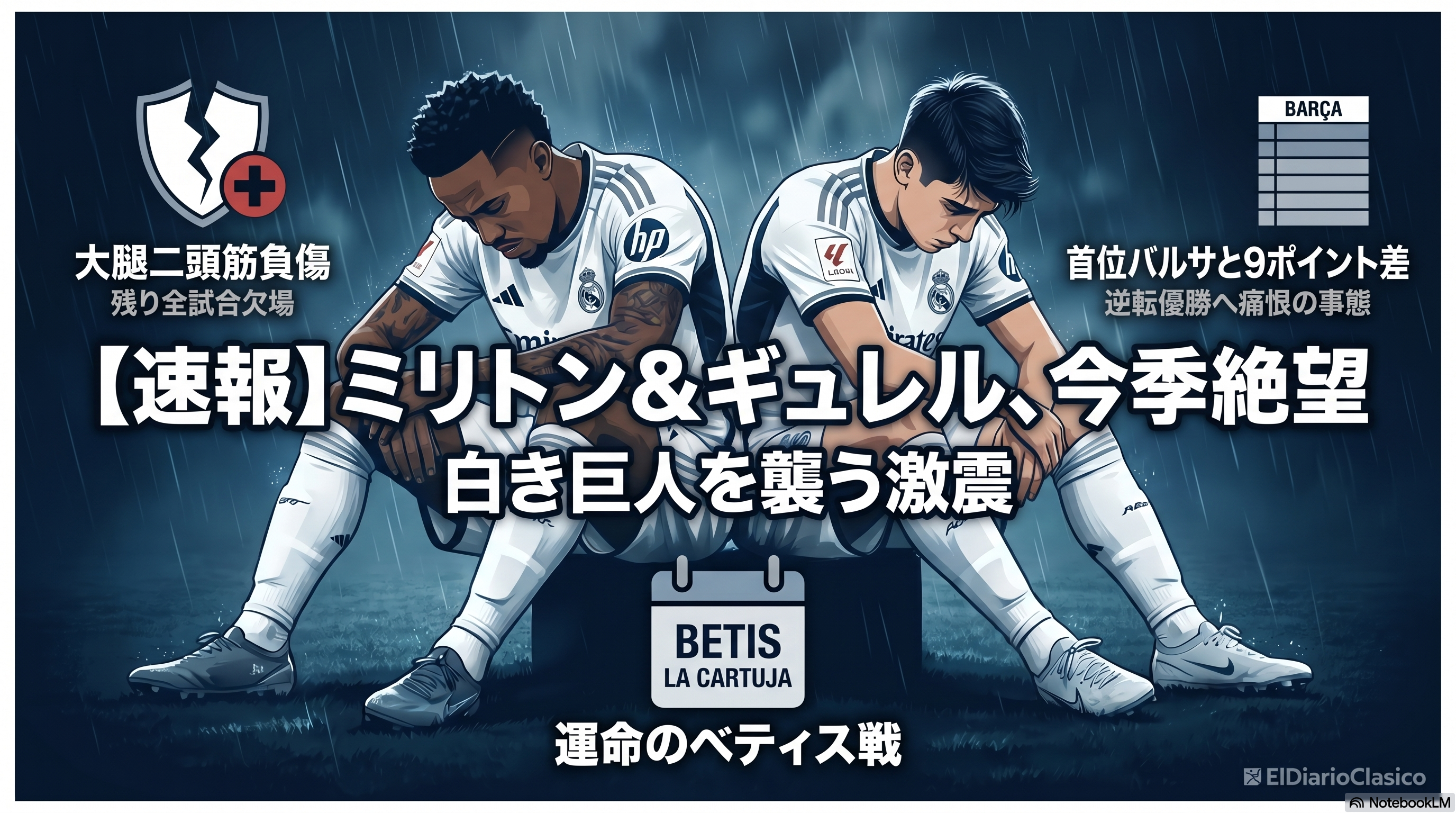 ミリトンとギュレルの今季絶望というニュースは、クラブにとって大きな痛手であると同時に、今後のチーム編成や監督の手腕に対する見方を左右する可能性があります。特にギュレルは期待の若手であり、その離脱はサポーターの落胆も大きいでしょう。ペレス会長による新体制改革の動きも報じられており、この状況がクラブの将来的な方向性にどう影響するのか、注目が集まります。カルバハルの復帰を巡る「不穏な空気」という表現も気になるところで、チーム内の人間関係やモチベーションに影響がないか、静かに見守る必要があります。