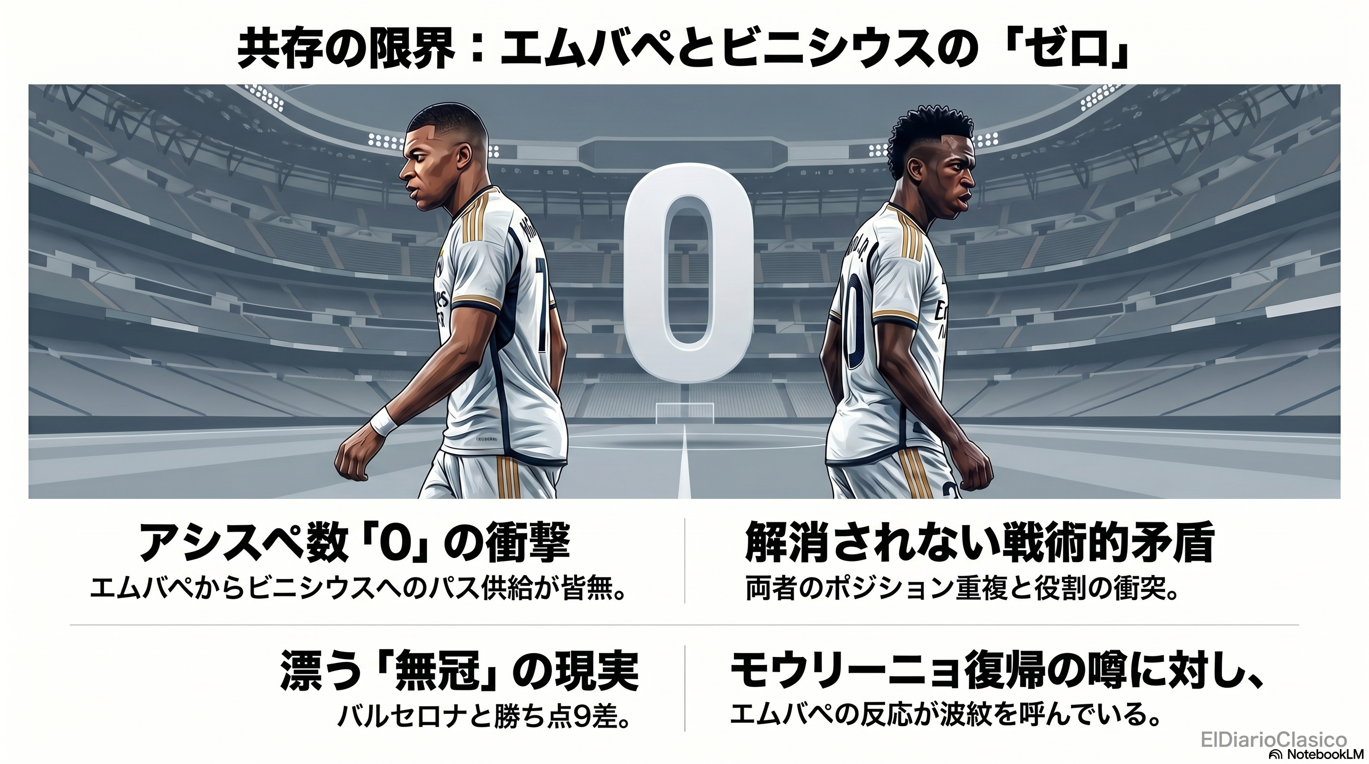来季のスカッド再建計画は、急激な変革を避けるという方針が示されています。しかし、エムバペとビニシウスという個の能力に依存した攻撃は、戦術的な共存の難しさを露呈しています。特に、エムバペが中央でプレーする際の特性の不一致や、ビニシウスへのアシストがゼロという事実は、個々の能力をどうチームとして機能させるかという根本的な課題を浮き彫りにしています。守備への貢献度も低いとなれば、この二人の「共存」は、監督の手腕が試される最大の難題となるでしょう。