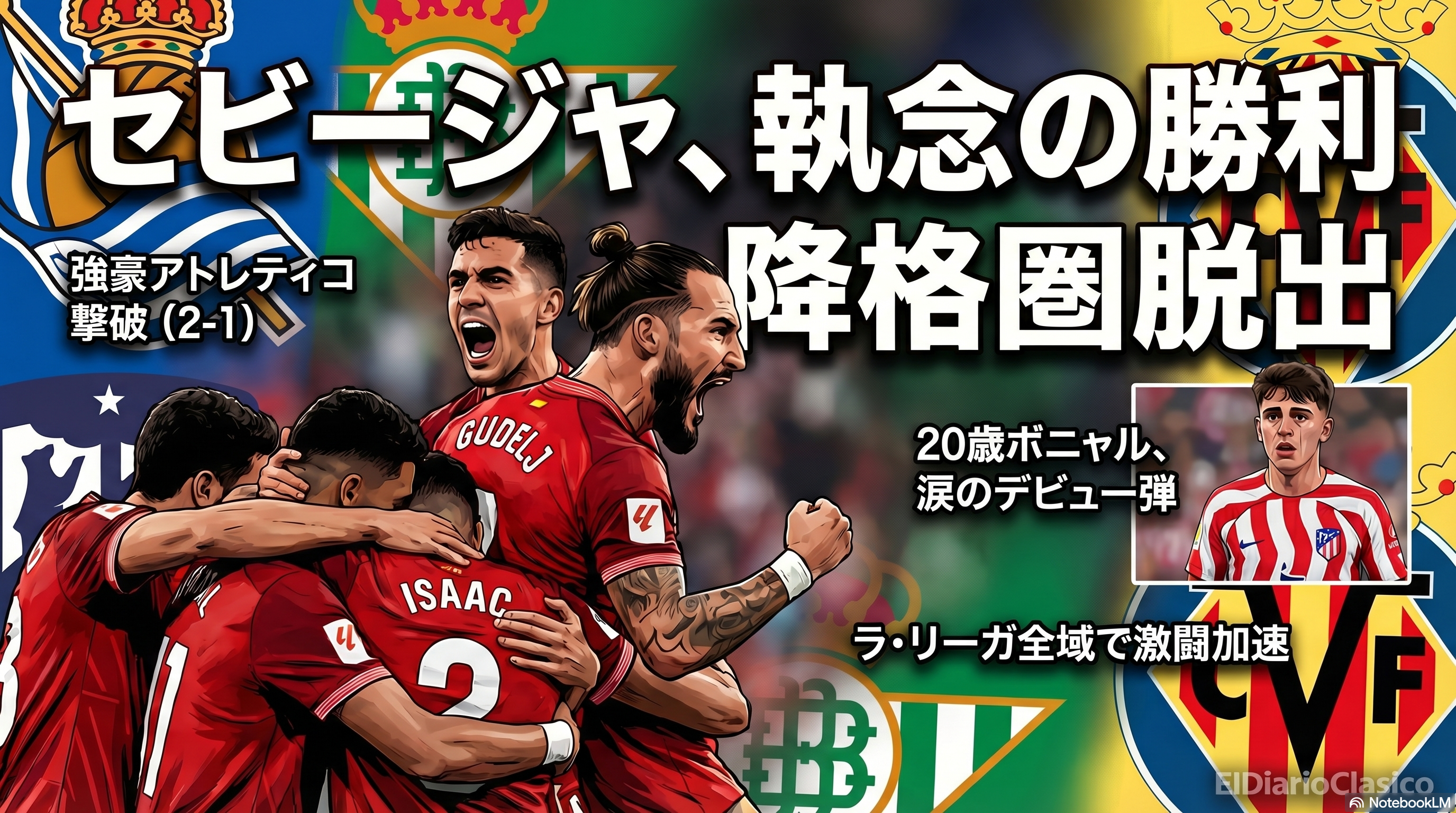 アトレティコ・マドリードのシメオネ監督が、重要な試合を前にカンテラーノを起用した決断は、クラブの育成方針と将来への投資という側面で評価できる。結果は敗戦となったが、デビュー戦でゴールを決めたボニャル選手の姿は、チームに新たな希望をもたらすだろう。一方、セビージャは新監督の初陣で劇的な勝利を飾り、降格圏を脱出したことで、クラブ全体に明るい空気が戻ってきた。アルメイダ前監督退任後の混乱を乗り越え、チームが一体となって残留を目指す姿勢は、サポーターにとっても大きな励みとなるはずだ。エルチェの勝利も、残留争いの激しさを物語っており、各クラブが置かれた状況に応じたメンタリティの重要性を示している。