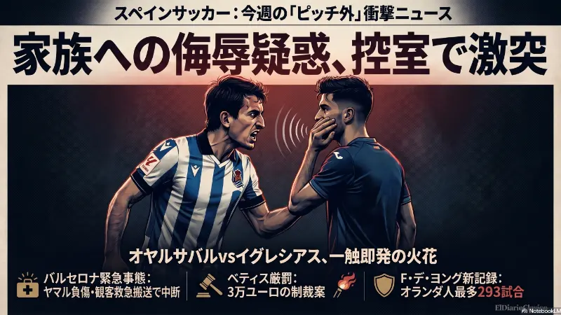 ヘタフェのフアン・イグレシアスが、試合中にレアル・ソシエダのミケル・オヤルサバルから自身の妻を侮辱されたとメディアに対して激しい怒りを込めて主張している。ピッチ上での出来事とはいえ、家族を巻き込んだ暴言の疑いが浮上したことで、選手間のリスペクトを欠く行為として大きな物議を醸している。イグレシアスは具体的な言葉こそ伏せたものの、オヤルサバルの発言が許容範囲を完全に超えていたことを明言し、両者の間に深い遺恨を残す事態となっている。 (via Estadio Deportivo)